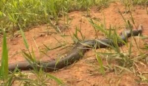 Sucuri-verde (Eunectes murinus) encontrada em uma propriedade rural