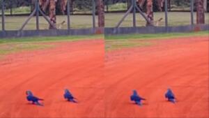 Dança sincronizada? Araras pousam em estrada e encantam fotógrafa no Pantanal