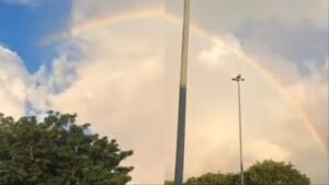 Arco-íris encanta moradores em entardecer no Parque do Sóter
