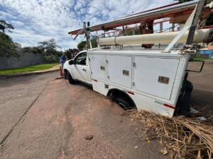 Caminhonete de manutenção é engolida por cratera no Monte Castelo, em Campo Grande