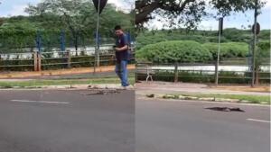 VÍDEO: Jiboia dá ‘show’ e para trânsito em frente ao Lago do Amor