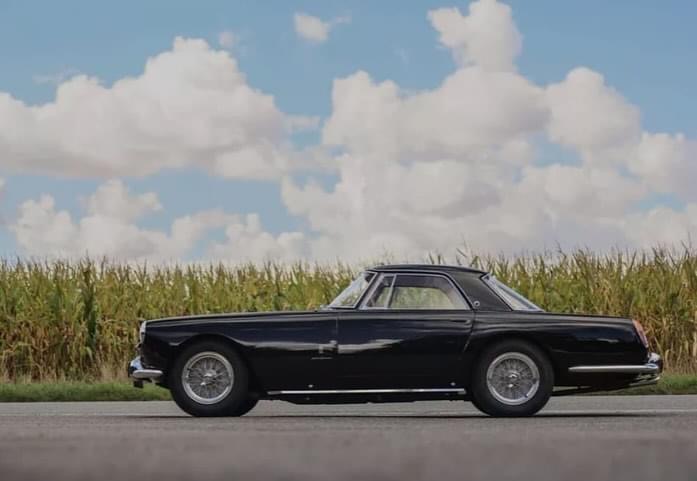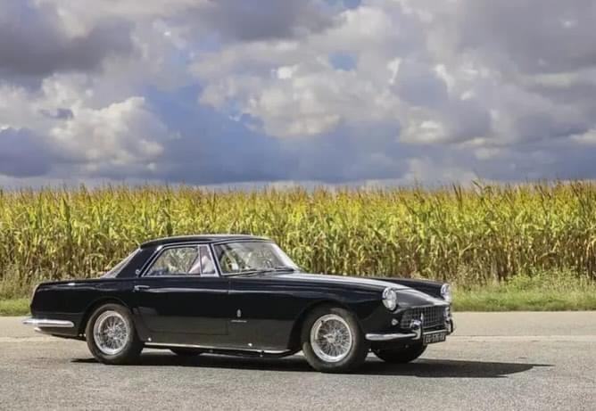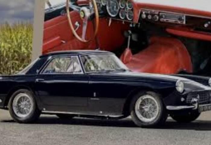 O carro, projetado por Pininfarina, foi a tentativa da Ferrari de construir um veículo mais civilizado. O cupê preto com rodas de raios de arame é o 11º dos 353 exemplares desse tipo construídos de 1955 a 1960, de acordo com o catálogo de vendas.