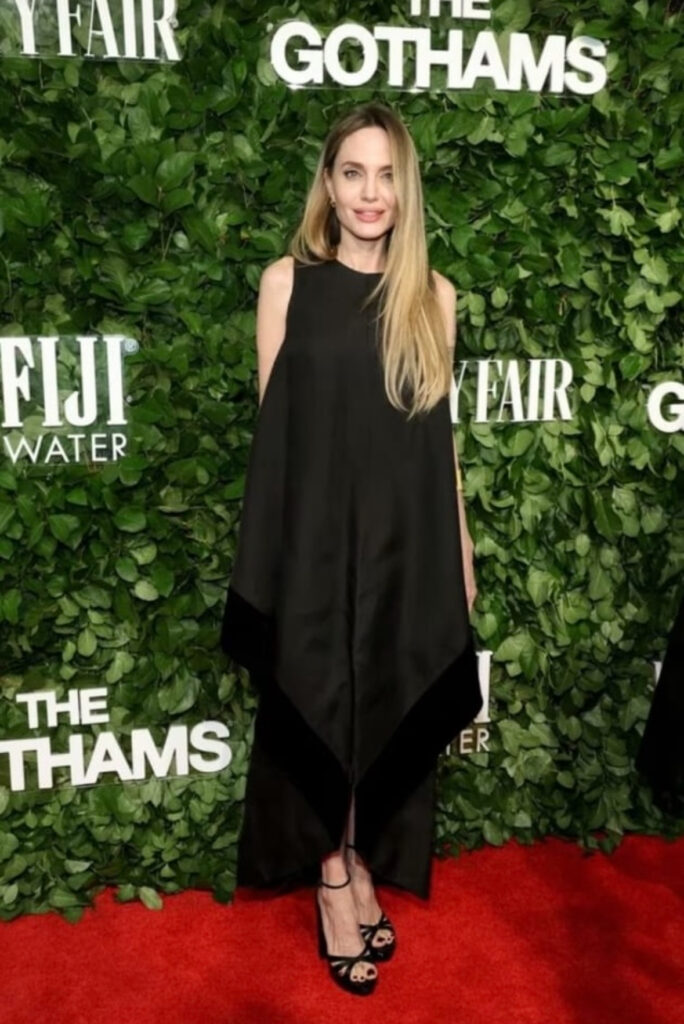 Destaque este ano com o filme “Maria”, a atriz Angelina Jolie passou pelo tapete vermelho com um vestido preto e os cabelos soltos.