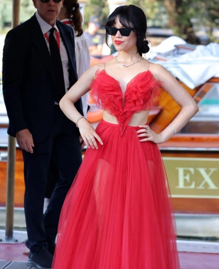 Jenna Ortega, a Wandinha de vermelho Chanel em Veneza
