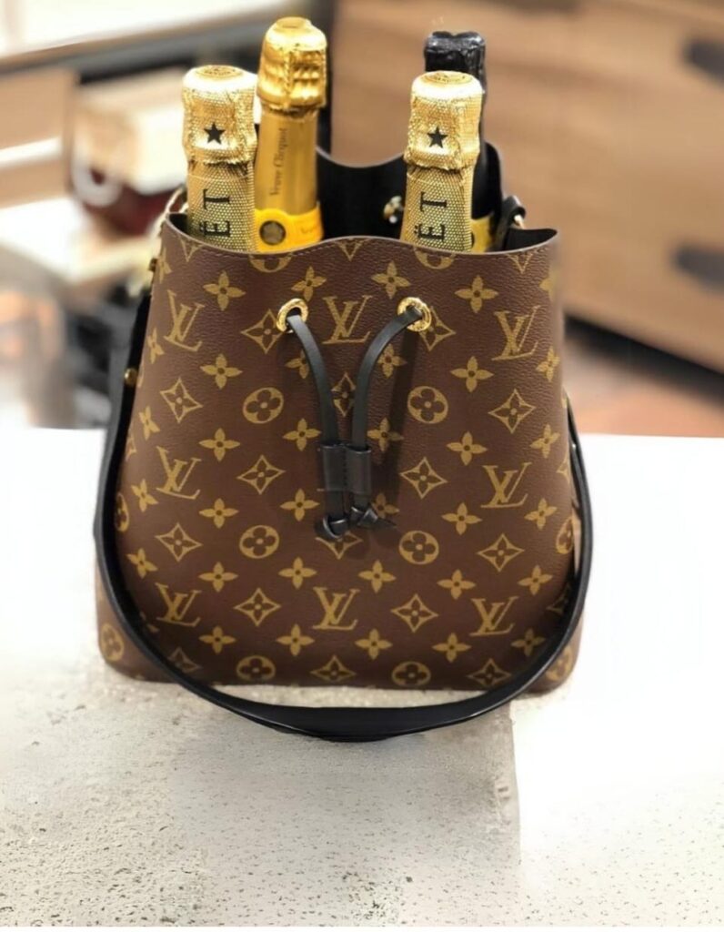 Em 1932, a Louis Vuitton apresentou a icônica bolsa Noé, criada por Gaston- Louis Vuitton para atender a um pedido inusitado: um elegante transporte para garrafas de champagne. Seu design em formato de balde foi feito para acomodar cinco garrafas, combinando praticidade e sofisticação com detalhes em couro e uma estrutura resistente em canvas.