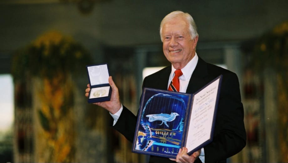 Por suas “décadas de esforço incansável para encontrar soluções pacíficas para conflitos internacionais, promover a democracia e os direitos humanos e promover o desenvolvimento econômico e social”, Carter recebeu o prêmio Nobel da Paz em 2002.
