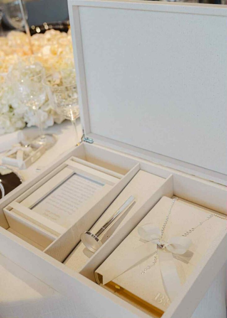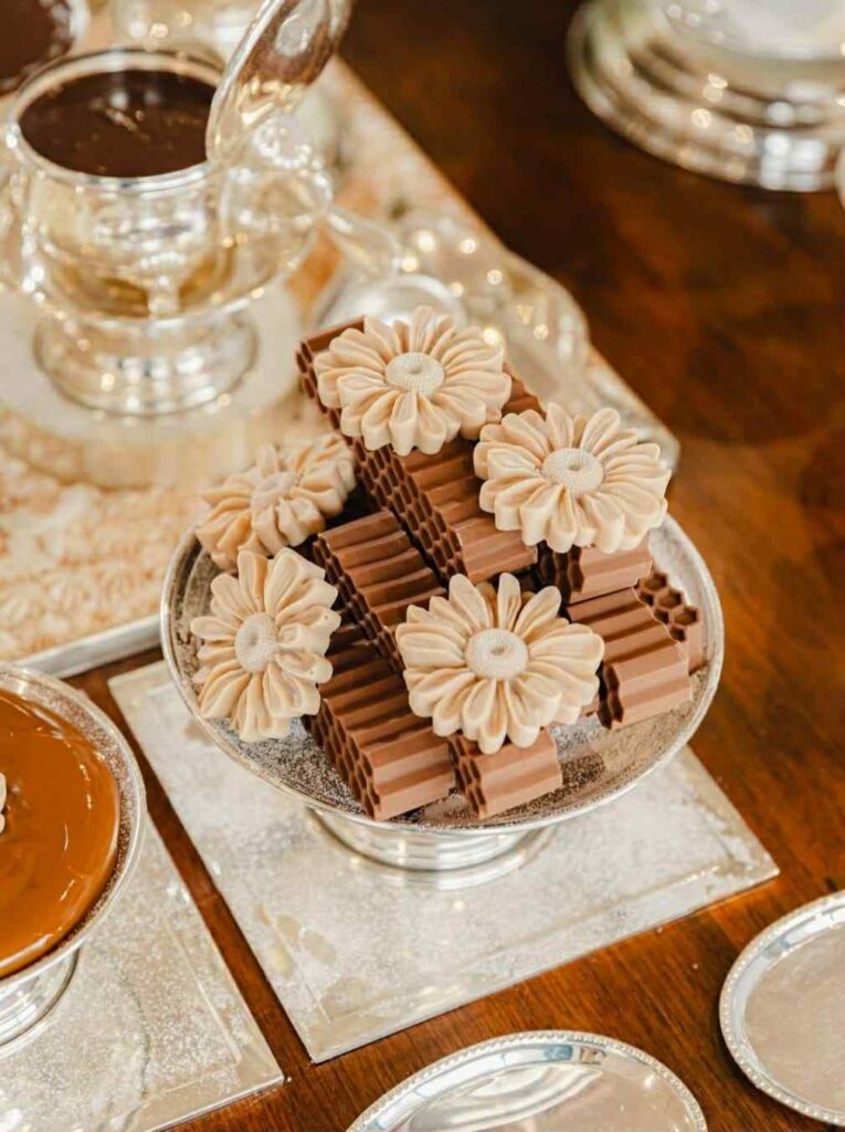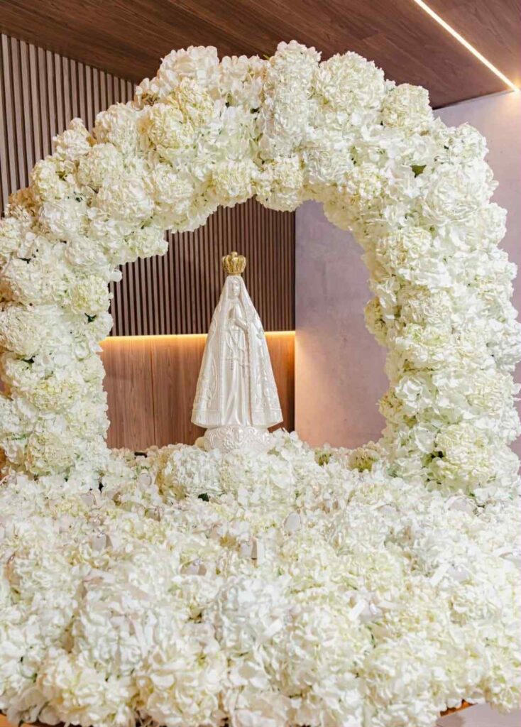 Entre todos os elementos da festa, o bolo ganhou destaque especial. A obra foi assinada pela renomada confeiteira Isabella Suplicy, reconhecida por suas criações sofisticadas e artísticas. Todo branco e em formato de uma flor aberta, o doce impressionou os convidados e conquistou a web pela delicadeza.