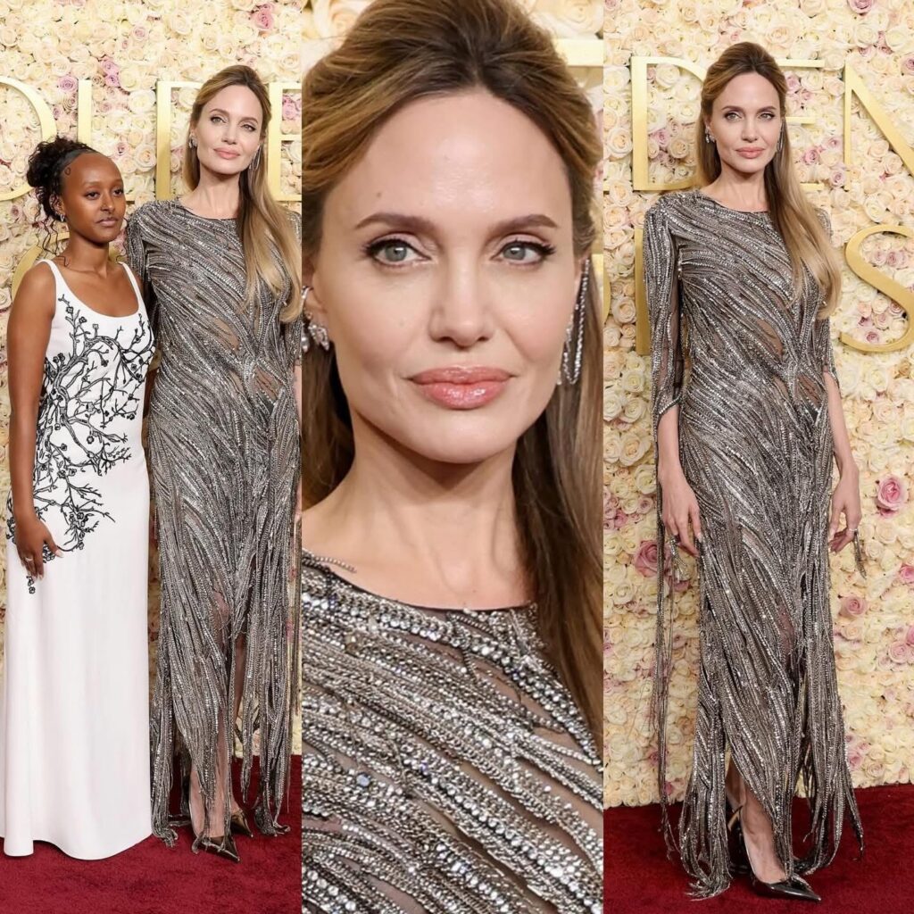 Angelina Jolie trouxe sua habitual aura de perfeição, acompanhada da filha Zahara, para celebrar sua indicação a “Melhor Atriz de Filme de Drama” por sua interpretação marcante de Maria Callas no longa ‘Maria’.