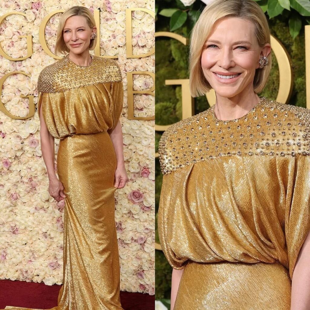 Cate Blanchett trouxe todo o brilho do Ano Novo para o evento, com um look dourado que reforça sua torcida para levar o prêmio de “Melhor Atriz em Minissérie, Antologia ou Telefilme” por Disclaimer.