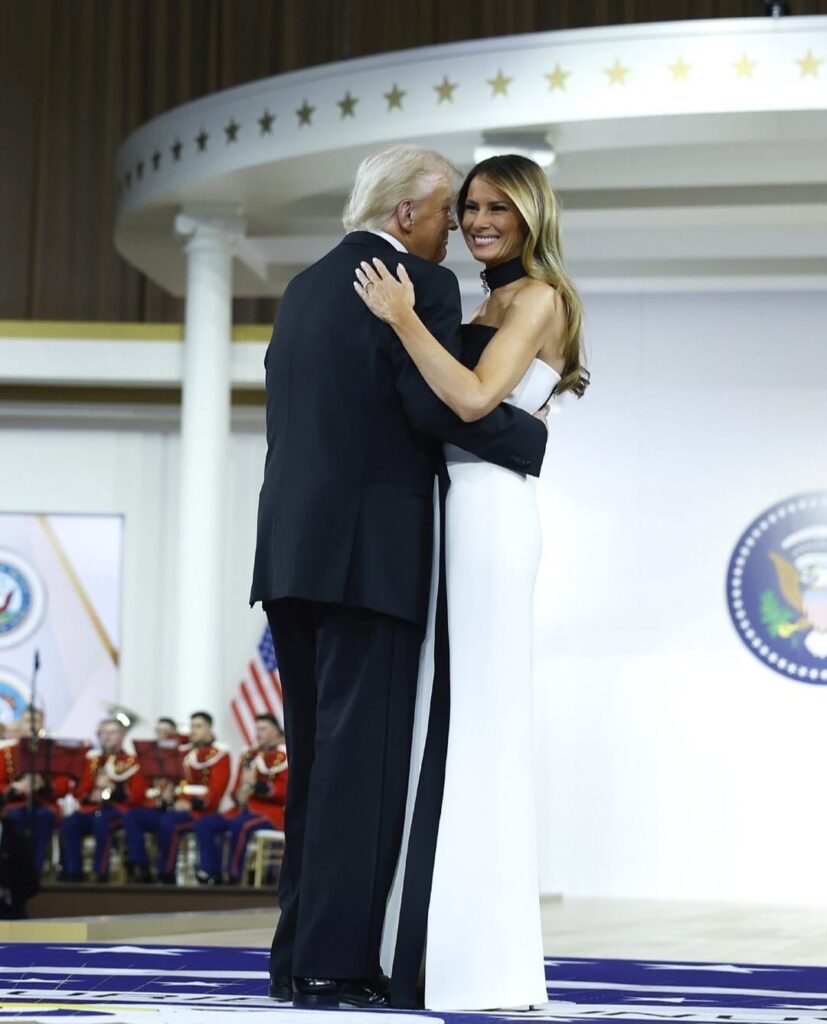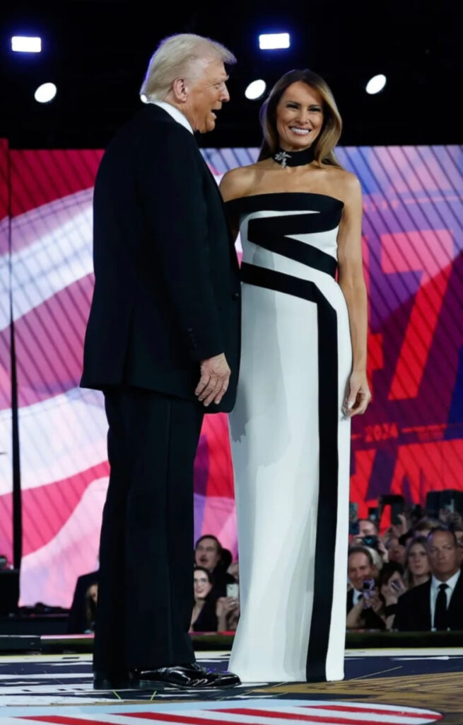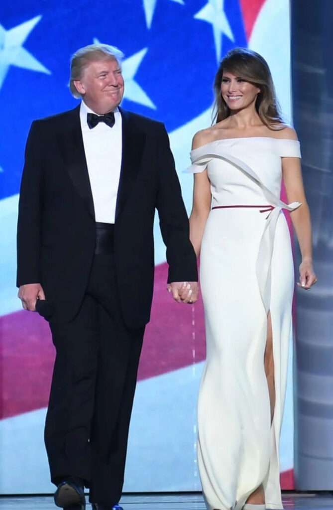 Seu vestido para o baile inaugural em 2017 quando Donald Trump foi empossado como presidente dos Estados Unidos pela primeira vez foi um fabuloso vestido cor baunilha desenhado por seu amigo íntimo, o estilista Hervé Pierre. A peça trazia decote Bardot com babados delicados que caíam na lateral do desenho.