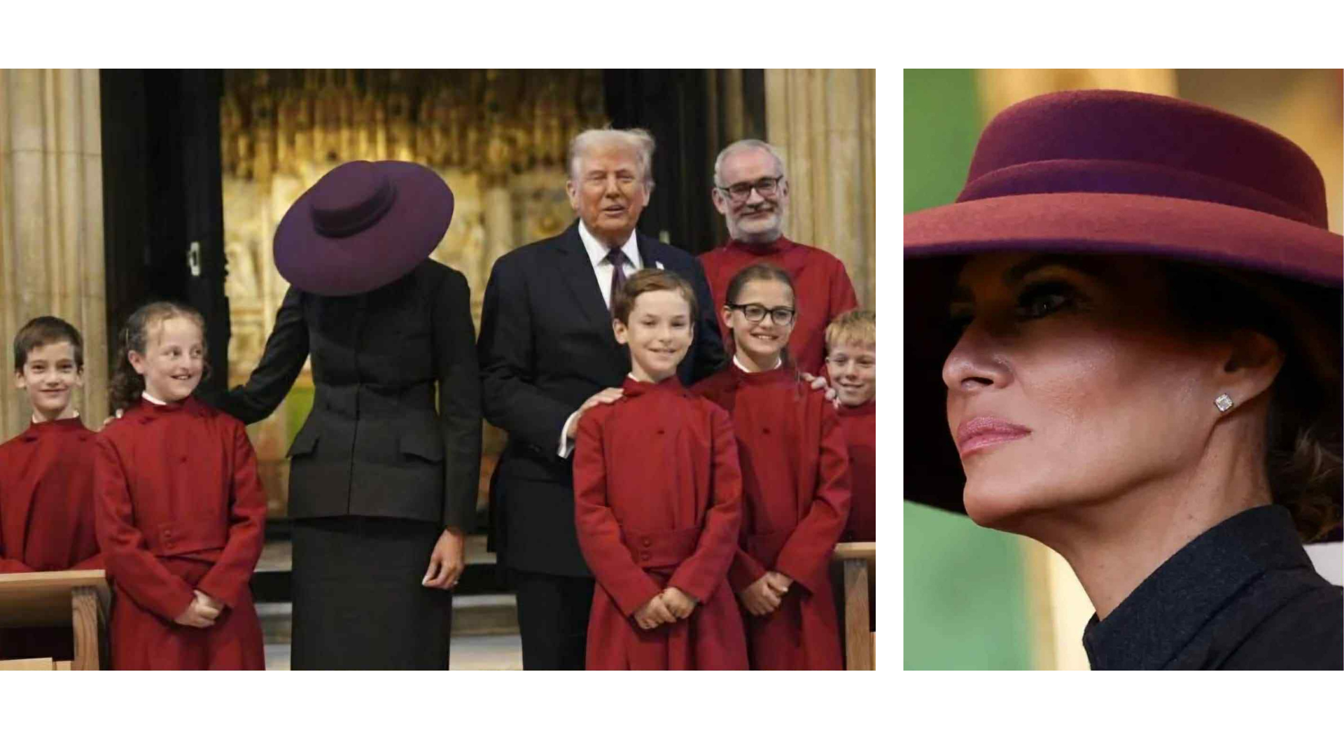 Sob o chapéu Christian Dior está Melania Trump coberta de elegância, mistério e sofisticação.