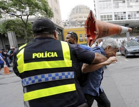 Ao sair do local, alguns servidores o seguiram. O jornalista foi atingindo por um cone de trânsito, na altura da Avenida Erasmo Braga.Um jornalista do Jornal O Globo, mais cedo, foi agredido por um dos manifestantes. Vestido com uma camisa azul, um homem tentou agredir o repórter, que mexia no celular e conseguiu se esquivar do soco. Ao correr, um outro manifestante deu um chute em sua perna. O repórter perdeu seus óculos.