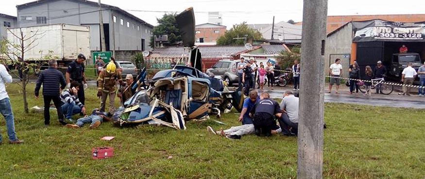O helicóptero de Hissam Hussein, prefeito de Araucária, na região metropolitana de Curitiba, caiu, na tarde desta sexta-feira, no Bairro Estação, na cidade da região metropolitana de Curitiba. Três pessoas estavam a bordo e ficaram feridas.