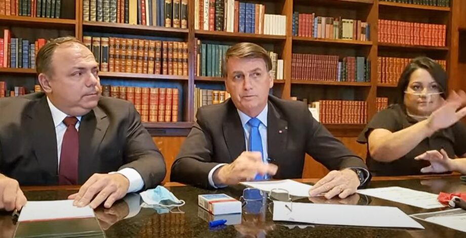 Bolsonaro fez o comentário, no momento em que o ministro interino da Saúde, Eduardo Pazuello, respondia a uma pergunta sobre a quantidade e aquisição do medicamento estocado.