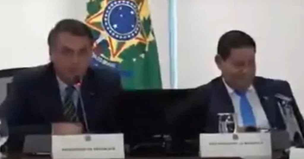 Mourão faz sinal de reprovação durante discussão entre Bolsonaro e Dória