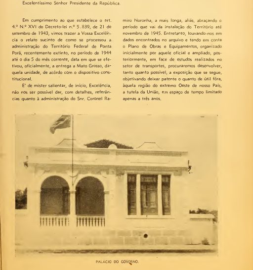 O primeiro governador do Território de Ponta Porã, Coronel Ramiro Noronha, de fato, iniciou sua administração entre os meses de outubro e novembro de 1944, ou seja, pelo menos nove meses depois de sua nomeação. O segundo governador, o Major José Guiomard dos Santos, conforme já apontado por Centeno (2007), foi nomeado no final do Estado Novo. De acordo jornal da época apresentado por Rocha (2019, p. 87)