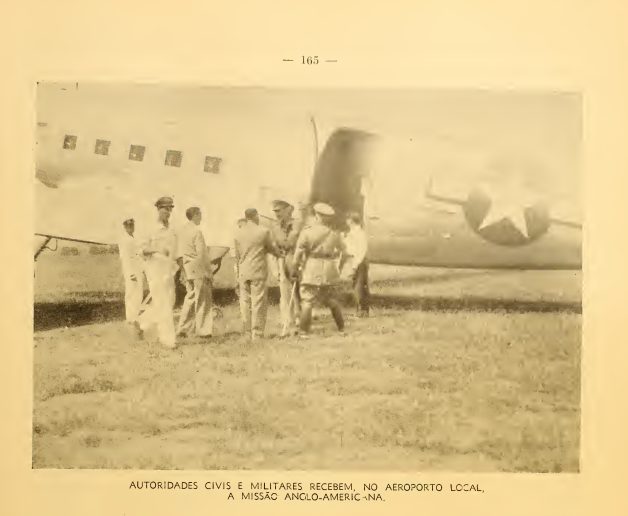 Arquivo: Autoridades civis e militares recebem a Missão Anglo-Americana no aeroporto local de Ponta Porã, que se localizava na área do castelinho.