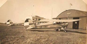 Arquivo da família de Franscisco Rodrigues década de 1940. Hangar que se localizava na área do castelinho. Aeroclube Deem Assas ao Brasil.