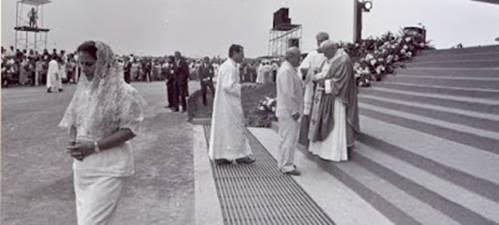 João Paulo II, em 17 de outubro de 1991. dia seguinte à sua chegada à capital do Estado, cumpre a parte mais importante de sua agenda: missa campal para milhares de fiéis, em área e altar preparados especialmente para o ato, nas proximidades do cemitério Santo Amaro. A base de sua homilia foi a fidelidade conjugal, tema adequado a Campo Grande, à época, considerada a capital com maior número de divórcios no Brasil:
