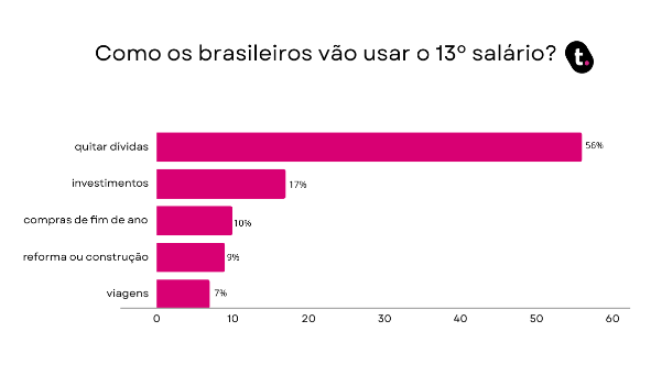 De acordo com os dados da pesquisa, mais da metade dos respondentes (56%) usará o 13º salário para quitar dívidas.