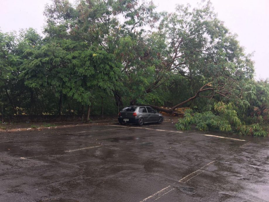A chuva da manhã desta quarta-feira (21) derrubou parte de uma sibipiruna no cruzamento da Rua Pernambuco com a Rua Rui Barbosa, em Campo Grande. O galho quase caiu em cima de um carro de passeio que estava estacionado no local.