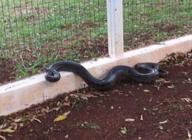 De acordo com o portal Ponta Porã Informa, a cobra estava perto da cerca de proteção, ao redor do parque Arnhupho Fioravante, na Rua Santos Dumont.