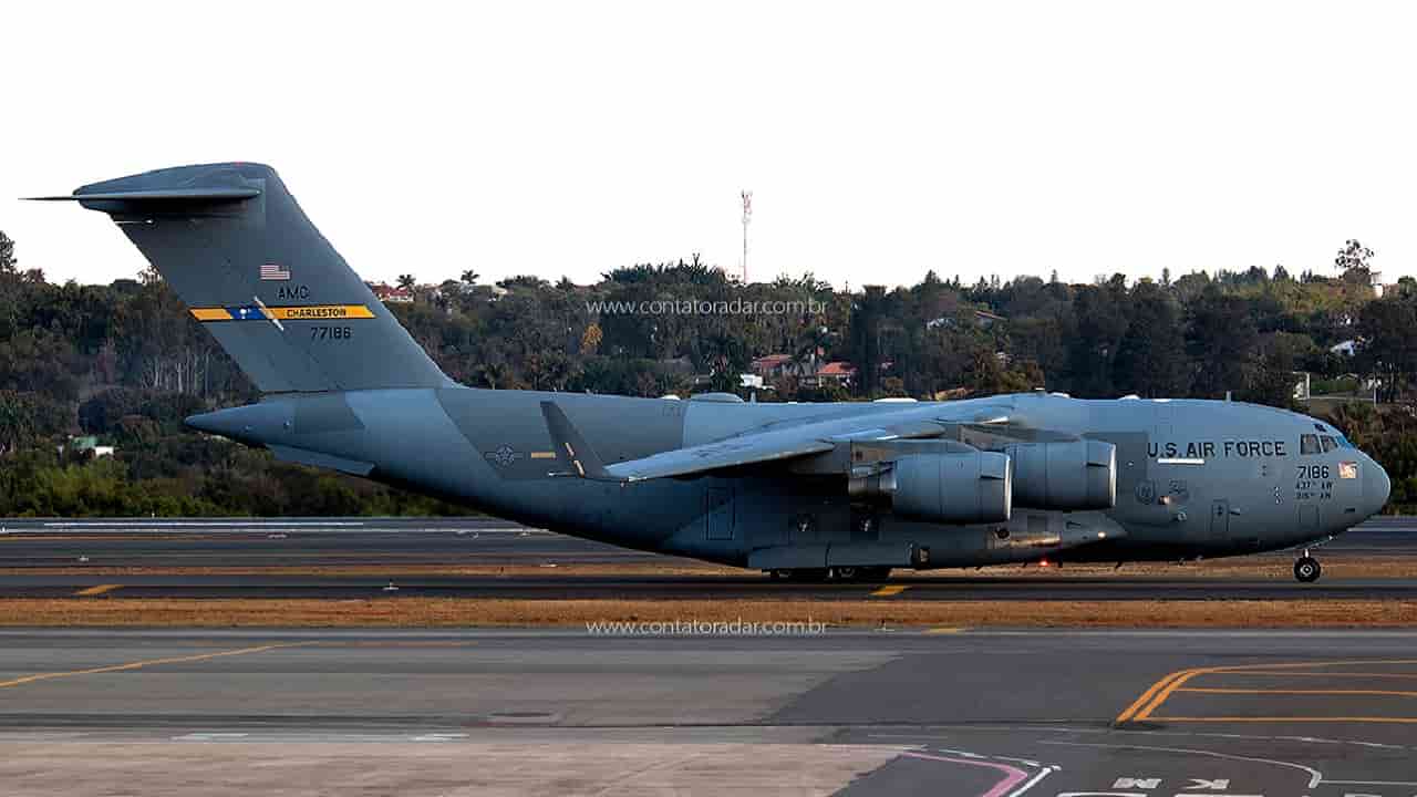 Cargueiro C-17 que irá desembarcar em Campo Grande – Foto: Gabriel Benevides / Contato Radar