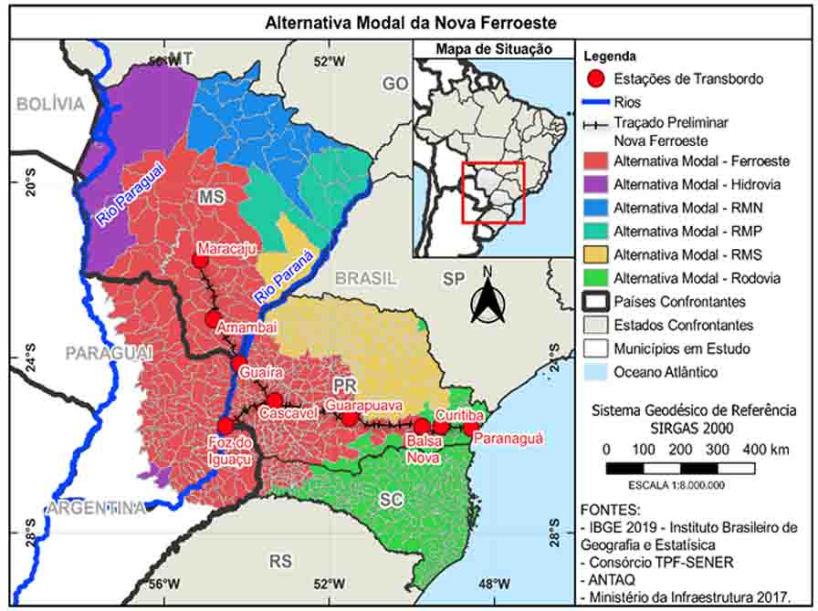 Em MS, a Ferroeste irá se conectar com a Malha Oeste – que vai de Mairinque (SP) a Corumbá -, que será relicitada no próximo ano. Já no Paraná, o projeto engloba um novo raçado entre Guarapuava e Paranaguá, no litoral do Estado e que tem um porto para exportação. Haverá, ainda, um ramal multimodal ligando Cascavel e Foz do Iguaçu.