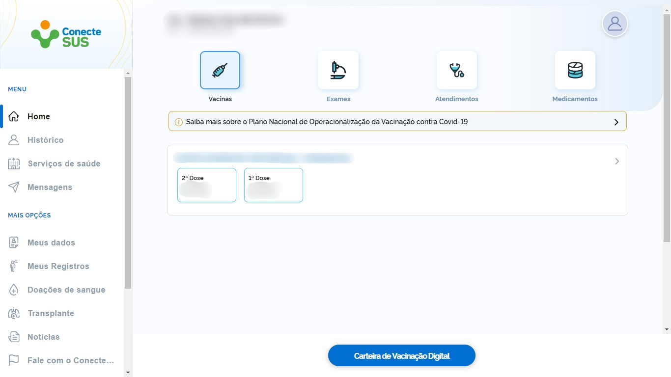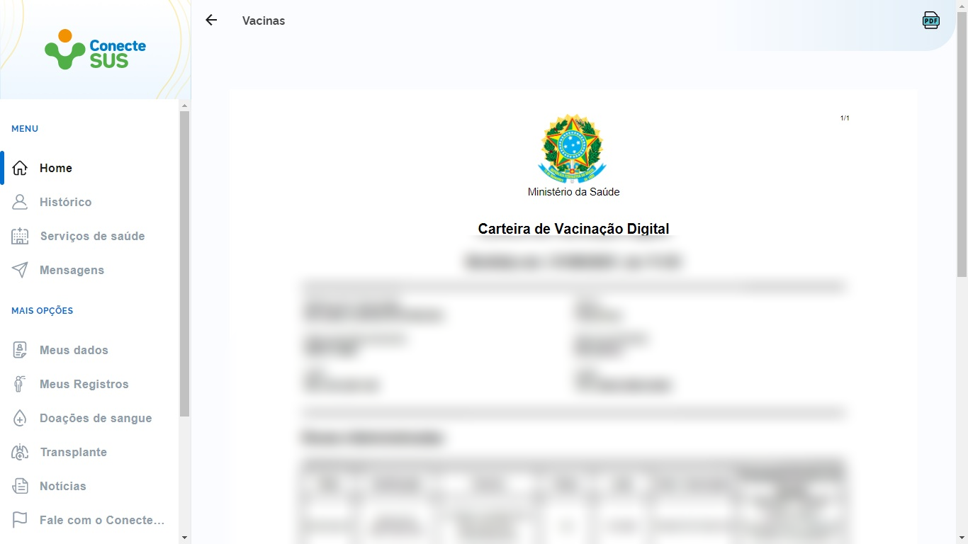 Também é possível obter o Certificado Nacional de Vacinação COVID-19, um documento que comprova a imunização contra a doença. O certificado pode ser obtido pelo Conecte SUS Cidadão, do Ministério da Saúde.