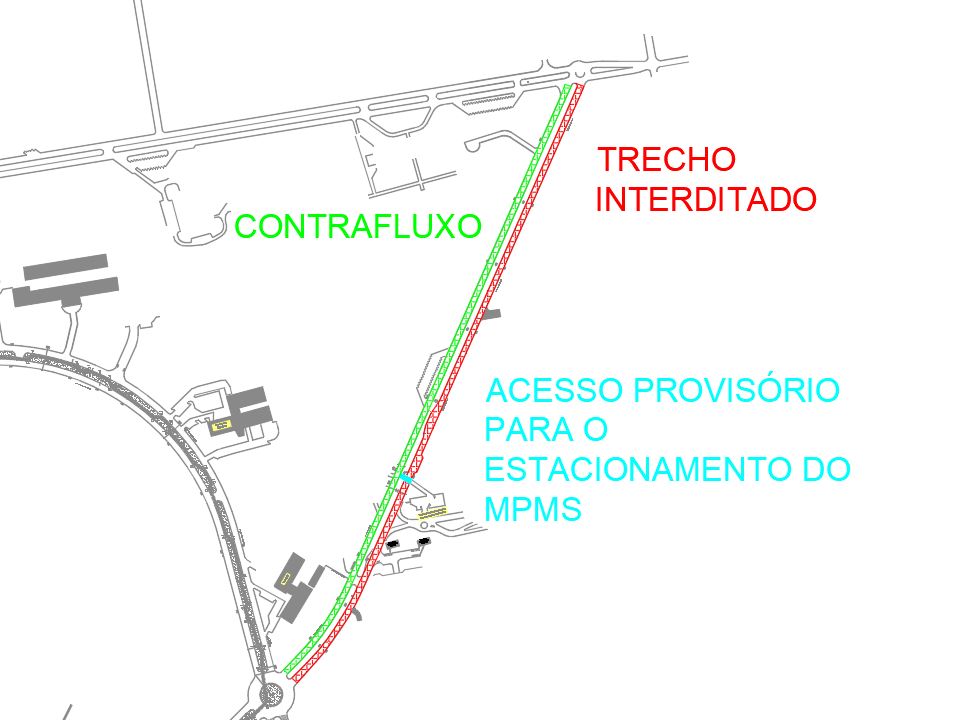 Os servidores do Ministério Público deverão utilizar o acesso provisório criado para direcionar ao estacionamento.