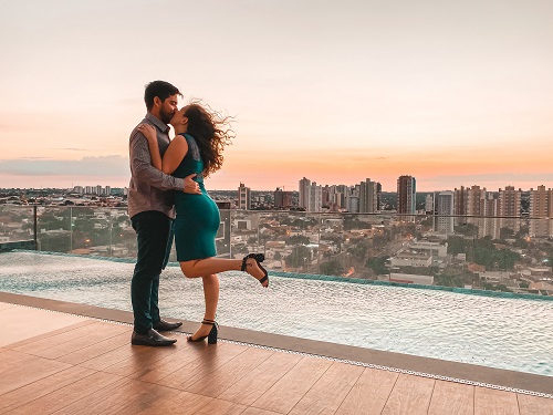 “Eu sou suspeito pra falar, por praticar paraquedismo, sou chegado nas alturas. E eu sempre digo, que o céu da nossa Cidade Morena é incrível, e de cima do Vertigo, ao amanhecer é possível ver o nascer do sol com o ângulo da piscina de borda infinita, ao fundo, o coração do centro da cidade. O lugar é fascinante, tanto para foto de casal, mas também quando tem visita de família e amigos, todos querem registrar o visual”, comenta o empresário.