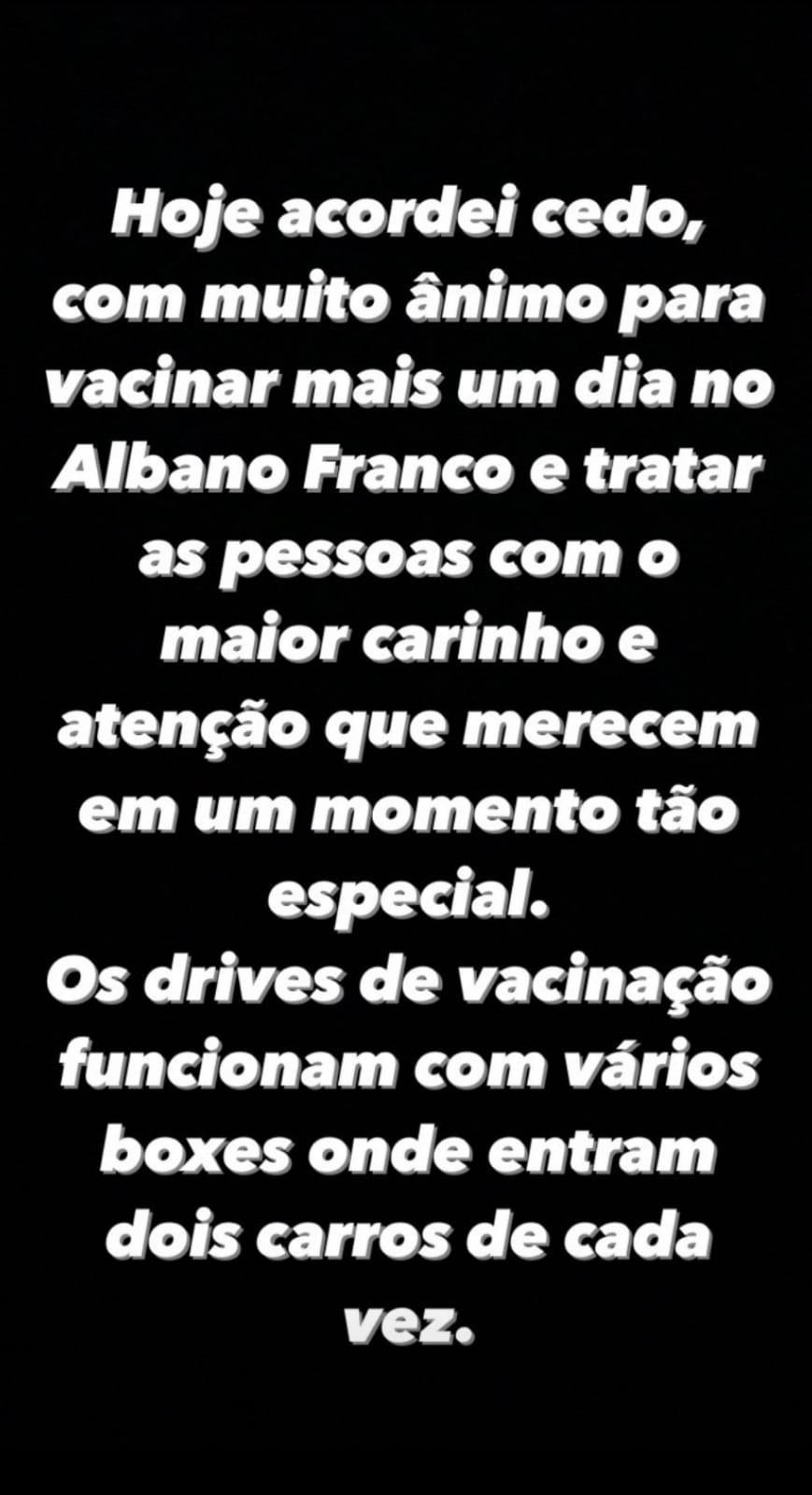 Nas redes sociais, o cirurgião dentista – que não será identificado – postou o relato completo da péssima experiência vivenciou. “Hoje acordei cedo, com muito ânimo para vacinar mais um dia no Albano Franco e tratar as pessoas com maior carinho e atenção que merecem em um momento tão especial”, começou.