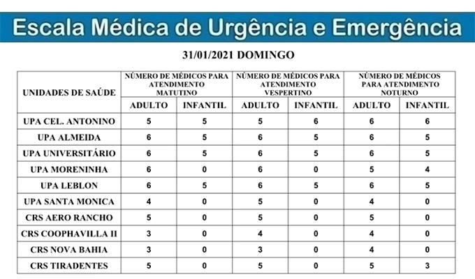 Confira abaixo a escala completa, com profissionais por UPA e CRS: