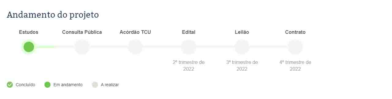 Confira abaixo a linha do tempo com previsões para a conclusão das próximas etapas da concessão: