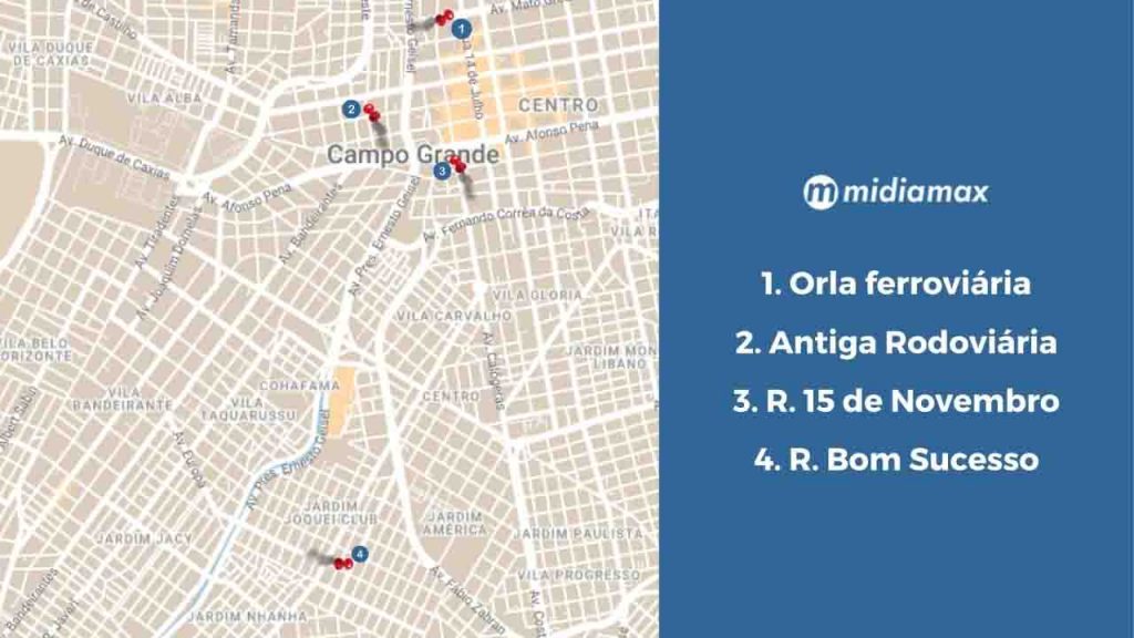 Além da orla ferroviária, frequentadores da antiga rodoviária também migraram para a esquina entre as Ruas Tv Lydia Baís e 15 de Novembro, também na área central de Campo Grande e já conhecida como ponto de refúgio para usuários e moradores de rua. Uma comerciante da região, que não será identificada, comenta ter percebido um aumento de pessoas que se refugiavam no local.