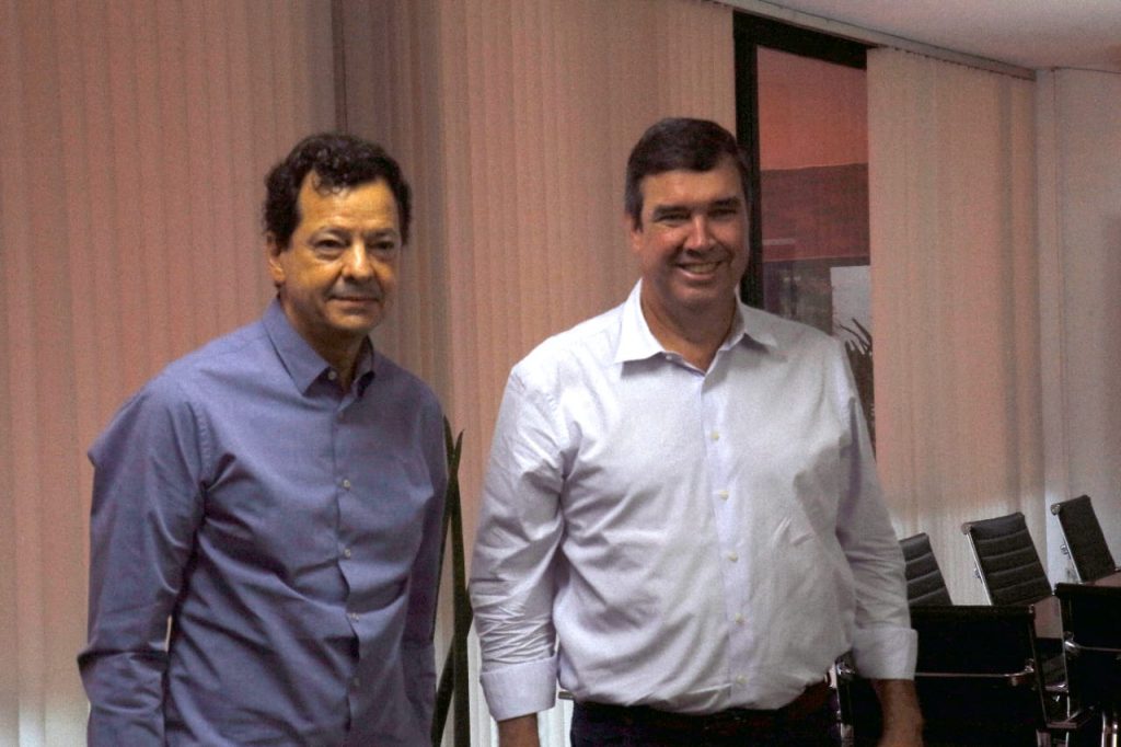 Eduardo Riedel visitou a sede do Jornal Midiamax nesta quarta-feira (14). Ele se encontrou com o sócio-fundador Carlos Naegele.