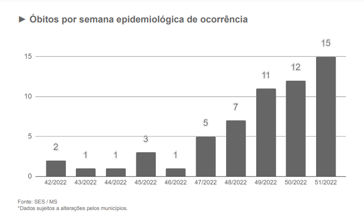 Mato Grosso do Sul registrou 15 mortes por Covid-19 na última semana, entre 20 e 27 de dezembro. De acordo com o boletim epidemiológico divulgado pela SES (Secretaria Estadual de Saúde), nesta terça-feira (27), o resultado representa a quinta semana consecutiva de aumento de óbitos no Estado pela doença.