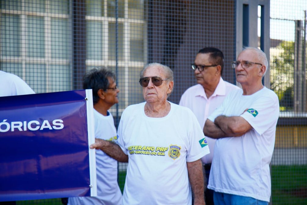 A manifestação também contou com a presença de veteranos das forças federais de segurança. Aos 81 anos, o policial rodoviário federal aposentado Estevaldo Laguilhon foi dar o seu apoio ao movimento. Ele se formou na turma de 1968, quando o Estado ainda nem havia ‘nascido’.