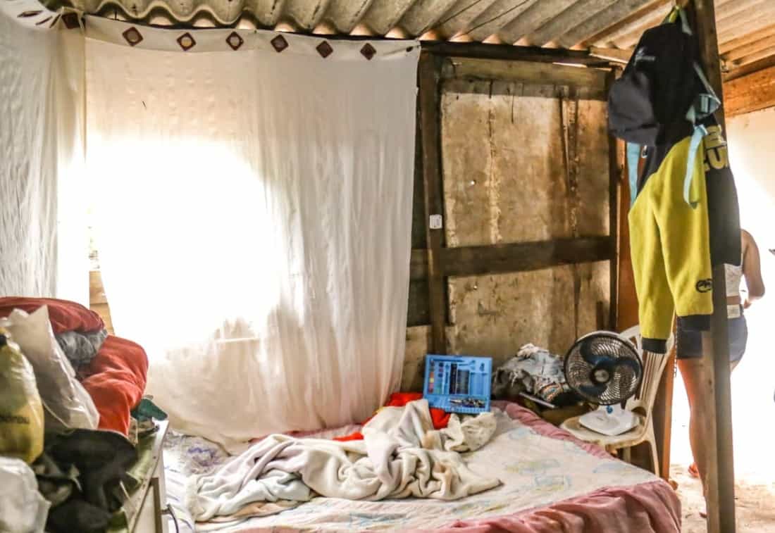 “Molhou tudo nossa casa, acordei com todos molhados, até a bebezinha. Foi uma situação terrível, pensei até em desistir, mas não tenho para onde ir mesmo”, lembrou sobre as dificuldades. “Não é fácil não, é difícil, mas não tem o que fazer”, se conforma a mãe de quatro.