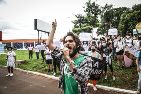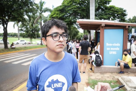A mobilização começou por volta das 9h30 em uma das vias da UFMS e teve um momento de concentração na frente da Reitoria e das pró-reitorias da Instituição. Quatro acadêmicos puderam entrar para conversar com um representante da Instituição enquanto os outros seguiram a manifestação pela UFMS.