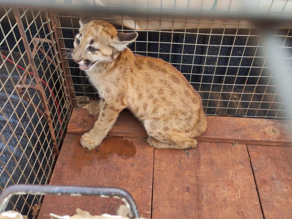 A PMA (Polícia Militar Ambiental) capturou um filhote de onça-parda em canavial após ele ser abandonado pela mãe durante colheita de cana em Rio Brilhante, cidade a 160 quilômetros de Campo Grande.