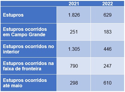 Mato Grosso do Sul registrou aumento de 104% na média de estupros cometidos entre os cinco primeiros meses de 2021 e 2022. Ano passado foram contabilizados 298 casos entre janeiro e maio, já neste ano são 610 no mesmo período. O aumento também ocorre em casos de feminicídio e violência doméstica.