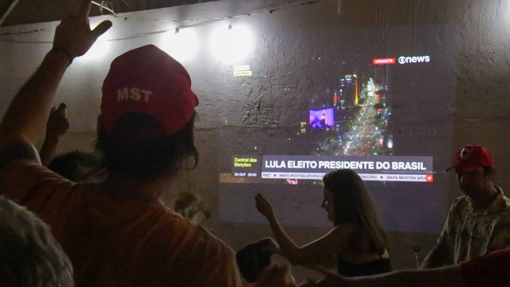 Pouco mais de 1 hora depois da confirmação da eleição de Luiz Inácio Lula da Silva para a presidência do Brasil, apoiadores festejaram a vitória do petista na sede do MST (Movimento Sem Terra) de Campo Grande.
