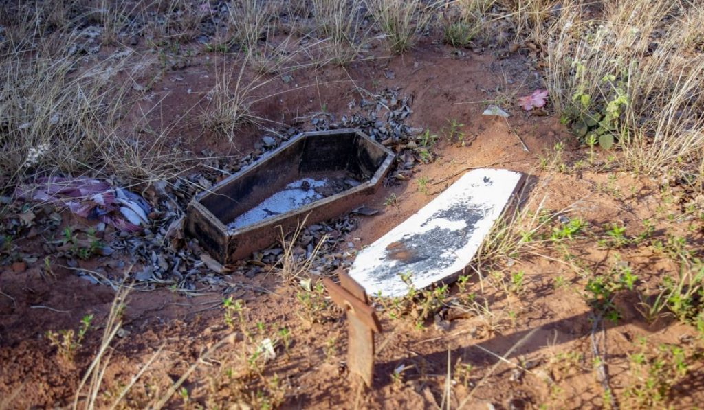 A ‘terra dos pés juntos’ da Três Barras também não escapa dos rituais, apesar do pedido deixado no comunicado logo na entrada. Das velas e garrafas de bebida jogadas entre túmulos, um caixão pequeno, de criança chama atenção. Aberto e sem os restos mortais, a explicação: o túmulo havia sido violado em agosto deste ano e, após a polícia ser acionada, um porco sem cabeça foi encontrado em estado de putrefação. O caixão segue jogado no local.
