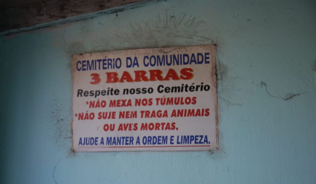 Ao abrir o portão, uma placa pede: “Não mexa nos túmulos, não suje, nem traga animais ou aves mortas”. O aviso não surte muito efeito. Assim como o primeiro cemitério, o das Três Barras também recebe reparos dos familiares para o Dia de Finados.