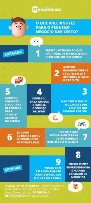 Desde o primeiro instante, Willians e a esposa estão juntos na empreitada: montando cardápios, na parte operacional e contratando entregas, quando necessário. No entanto, neste início, o dono faz questão de ir pessoalmente entregar os pedidos e receber o feedback de clientes, o que, segundo ele, está rendendo elogios e a certeza de estar no caminho certo.