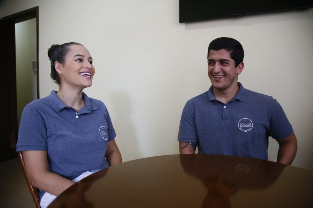 “Tive uma chefe que me apoiava muito. Ela falava que eu tinha dom, que devia abrir o meu negócio. Houve uma certa demora para eu arranjar emprego na minha área e, nesse meio tempo, conheci o Natã [Pantaleão de Oliveira Almeida, de 25 anos], que me influenciou e incentivou muito também”