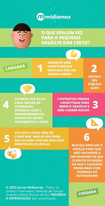 Mesmo sem planejar, empreendedores como Odilon encontram e ‘agarram’ oportunidades no momento em que são apresentados a elas. No caso dele, tudo começou após o conselho de um amigo, que possuía um bar há poucos metros de onde o militar aposentado montou a sua empresa. O chamado ‘Bar do Odilon’ fica na Rua José Antônio, entre a Rua Abrão Júlio Rahe e a Avenida Mato Grosso, na região central de Campo Grande. Em um primeiro momento, é difícil encontrar inovação, não fosse pelo local escolhido: 150 metros de uma universidade.