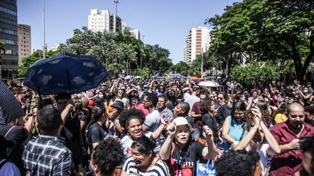 O protesto de professores que exigem o pagamento de reajuste salarial prometido pelo então prefeito Marquinhos Trad (PSD) bloqueia pelo menos duas quadras da Avenida Afonso Pena, em frente ao prédio da Prefeitura de Campo Grande. Comissão composta por sindicalistas se reúne com a prefeitura Adriane Lopes (Patriota), que já assegurou reajuste de 4,78% aos trabalhadores, e faz tratativas com a categoria que exige os 10,39% acordados em março deste ano, na gestão Trad.