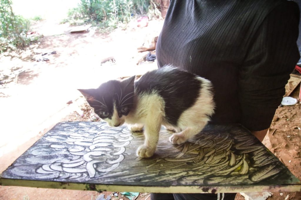 Ela morava sozinha no local, até que no último dia 31 de outubro, noite das Bruxas, encontrou a “witch” (bruxa, em inglês) uma gata filhote nas cores preta e branca, que tem feito companhia a mulher negra, de corpo magro e cabelos escuros. Vanessa preferiu ir morar longe da família, que ainda vive em Campo Grande, para tentar se recuperar da dependência química.